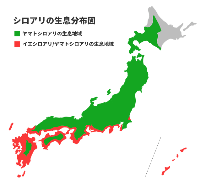 「シロアリの羽アリ」は「ヤマトシロアリ」の羽アリです。北海道の一部を除く日本全土に生息しており、4月中旬から5月にかけて日中に大量発生するのが特徴です。