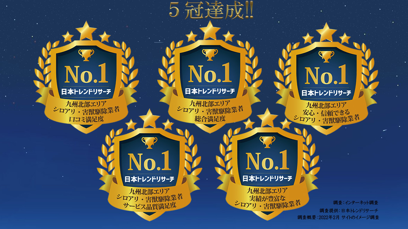 株式会社プログラントは、九州北部エリアのシロアリ・害獣駆除業者で初の5冠を達成致しました!