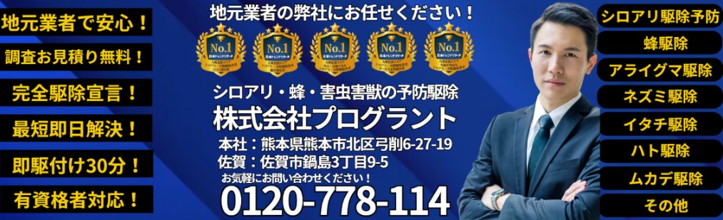 熊本シロアリ駆除.com 害虫害獣駆除専門|株式会社プログラント 福岡・佐賀・熊本対応 会社概要 料金一覧 施工までの流れ よくある質問